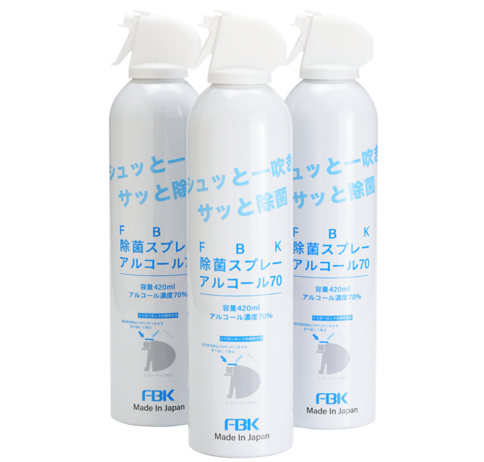 濃度70%の高濃度アルコールを使用しております。楽に使えるエアゾール(ガス噴射)式です。安全性に配慮した成分のみを使用しております。 |